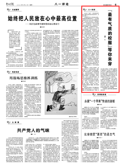 风尘三尺剑,社稷一戎衣。军装,是“最有气质的校服”。几经“改版”的军装,让军人更加精神、更有风采。“男儿不展风云志,空负天生八尺躯。”有志报考军校的学子们,“最有气质的校服”等你来穿。愿你们听从八一军旗的召唤,穿上这身“校服”,来感受强军的脉动,来军校挥洒汗水、放飞梦想!