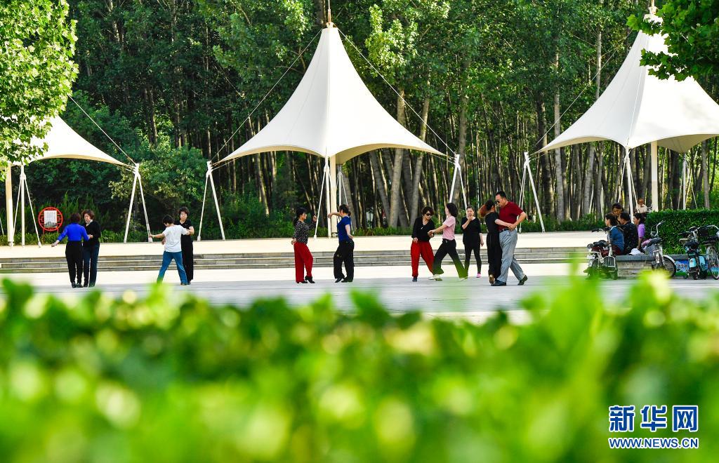 市民在河北省文安县森林公园内健身(2020年6月5日摄)。新华社记者 李晓果 摄