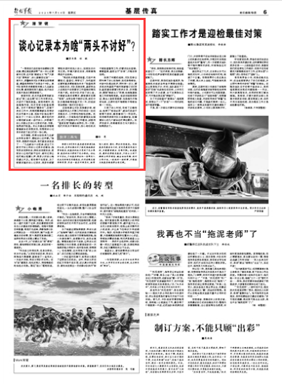 “现在机关到基层检查,已经不再翻笔记、查登记、考背记了,为何基层还要郑重其事地增加本本?”检查结果上报机关后,支队党委发现,基层带兵人在规定外自我要求工作留痕的情况不是个例。有的中队开设了谈心室,不管新兵是否有需求,都被要求定期“报到”,由带兵骨干做好记录;有的中队为确保教育检查万无一失,仍组织官兵按统一格式补抄笔记……