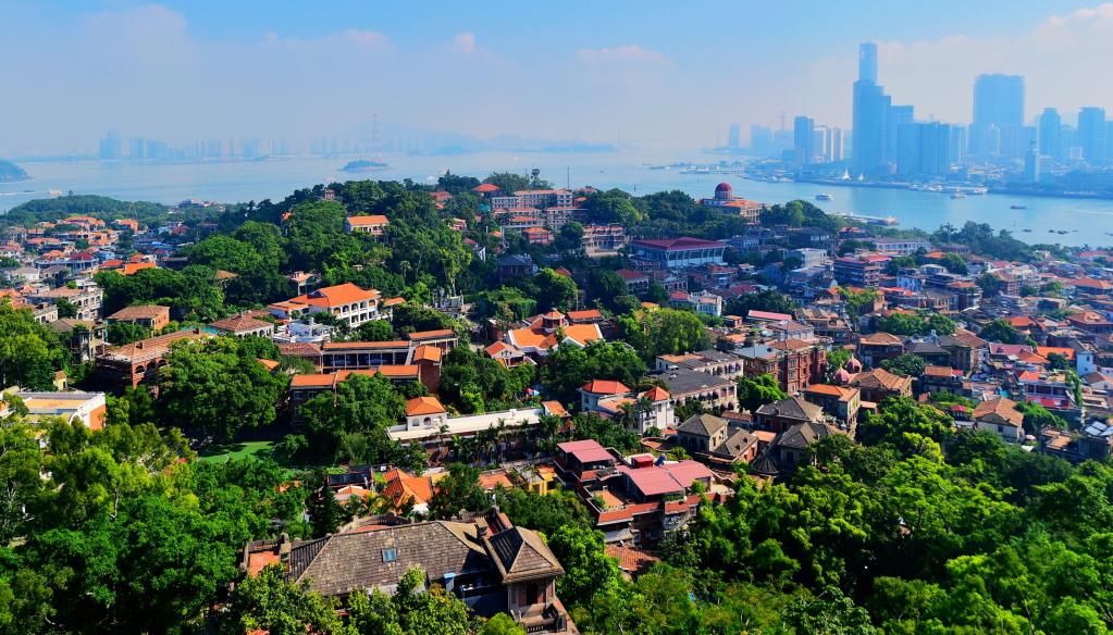 这是2017年7月11日在厦门鼓浪屿日光岩上拍摄的鼓浪屿景观。新华社记者 魏培全 摄