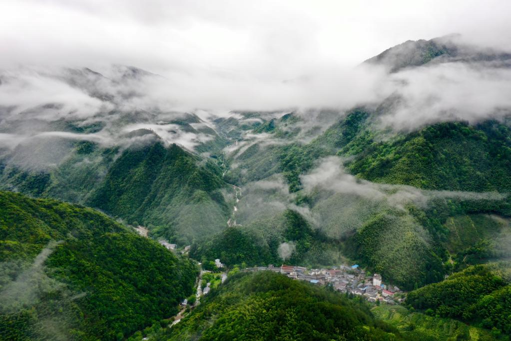 这是2021年5月18日拍摄的武夷山国家公园腹地的原始森林与村落(无人机照片)。新华社记者 姜克红 摄