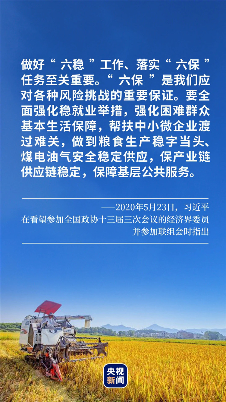 扎实做好“六稳”工作、全面落实“六保”任务,关系经济发展和社会稳定大局。面对常态化疫情防控与经济社会发展双重任务,以习近平同志为核心的党中央运筹帷幄、沉着应对,强化问题导向、夯实底线思维、彰显民生情怀。