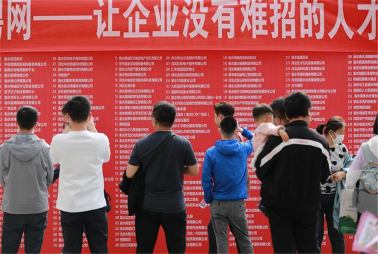 △2021年5月9日,河北省衡水市桃城区举行民营企业“百企千岗”公益性专场招聘会。