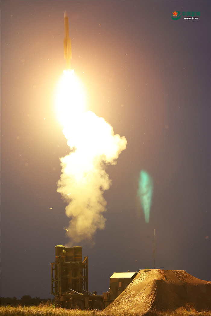 由于阵地位置暴露,导弹分队迅速转移。在预备阵地部署完毕的中高空导弹武器系统早已张网以待,迅速锁定目标,实施火力打击,多型雷达和导弹武器系统“编织”的防空网将目标全部摧毁。