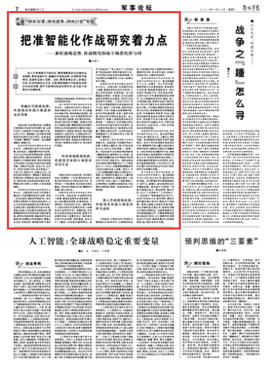 把握量变积累到质变爆发演变的时空拐点。战场态势、作战情况和战斗场景,都是战争形态的时空呈现,三者之间形态相符、机理相通。战斗场景量变发展到一定程度,往往会直接造成作战情况发生跳变,甚至引发战场态势产生质变。19世纪30年代,坦克飞机的规模制造和无线电通信的普及应用,催生了立体突破、纵深作战的新情况,开创了机械化战争集群作战、陆空协同的新场景,打破了道带式部署、线性攻防的固有战场态势。进入智能时代,随着AI指挥控制系统的发展成熟, “马赛克式”的多域联合网状杀伤将会成为新的常见作战情况,战斗场景的描绘将成为“超强算法的较量”“最强大脑的比拼”,生成的战场态势需要基于人机思维的结合才能“看得懂”“搞得透”。