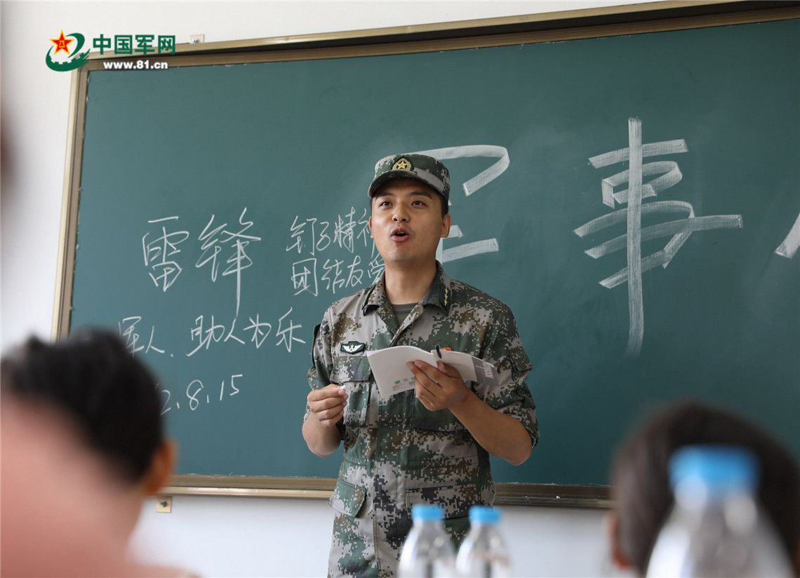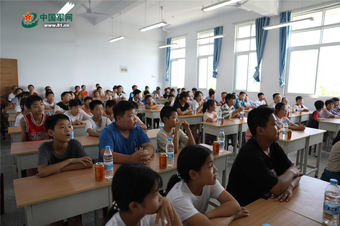 25日下午,该营专门向学校协调一间教室,把小学生们集中起来,给小学生们上了一堂国防教育课。课堂上,官兵们带领小学生高唱歌曲,增强战胜洪水的信心。袁文浩介绍了军事常识,小学生一个个听得很认真。“雷锋”“团结友爱”“助人为乐”……在互动环节,当被问到“对军人的印象”时,小学生们争相举手回答。