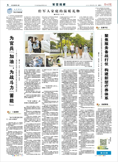 在加强工作规范方面,将在职军官和离休退休干部的疗养周期、随员数量调整一致,规范优化疗养计划下达、指标申请、出入院办理程序办法,保证官兵方便顺利参加疗养。