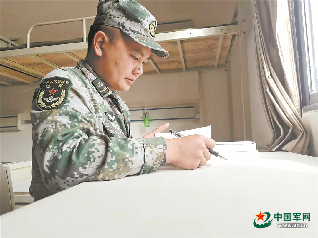 刚选取士官时,郭嘉诚的母亲突然患病卧床不起。得知消息,他当着战友的面流泪了。