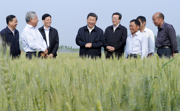 2014年5月9日,习近平总书记在尉氏县张市镇高标准粮田察看小麦长势。
