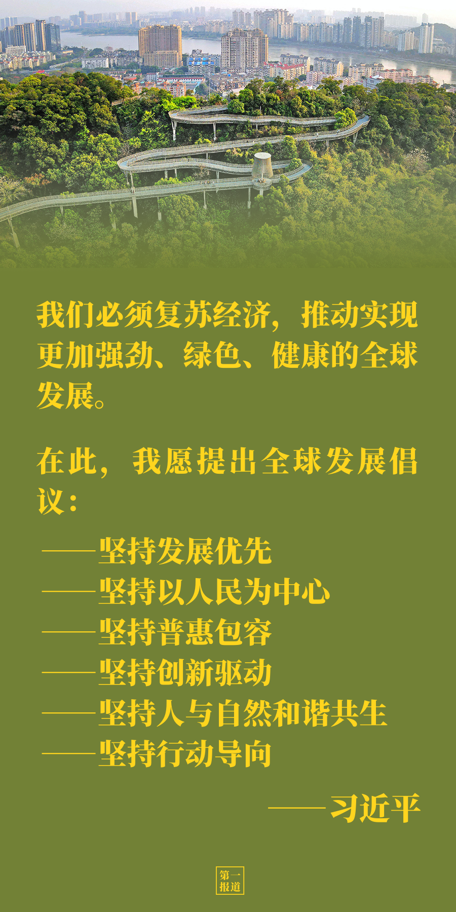 ——坚持人与自然和谐共生。完善全球环境治理,积极应对气候变化,构建人与自然生命共同体。加快绿色低碳转型,实现绿色复苏发展。中国将力争2030年前实现碳达峰、2060年前实现碳中和,这需要付出艰苦努力,但我们会全力以赴。中国将大力支持发展中国家能源绿色低碳发展,不再新建境外煤电项目。