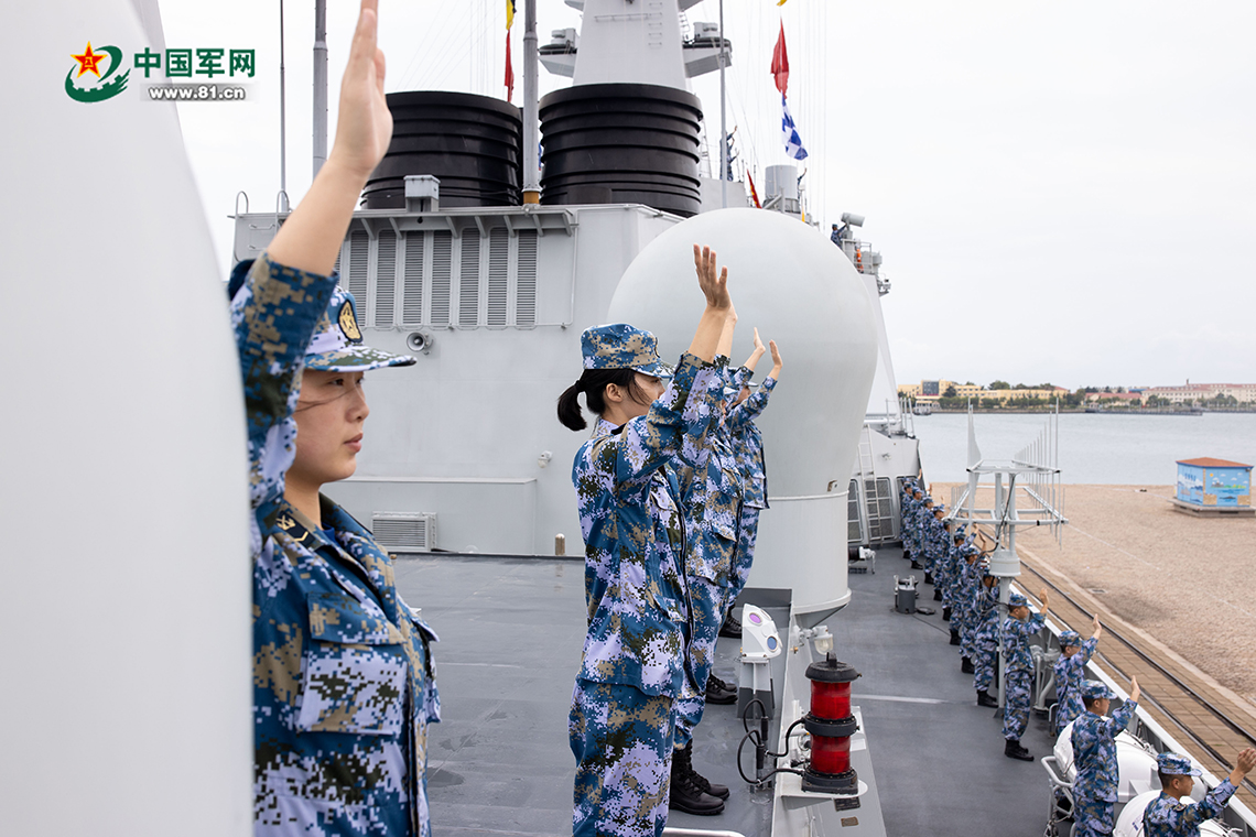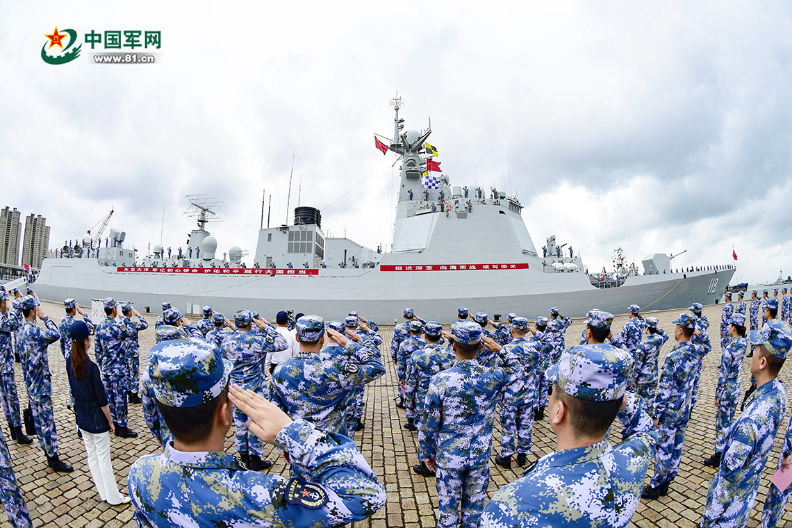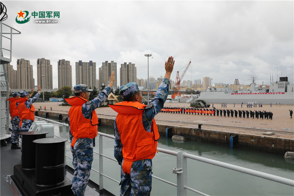 9月26日上午,由乌鲁木齐舰、烟台舰、太湖舰组成的海军第39批护航编队在青岛某军港解缆起航,赴亚丁湾接替第38批护航编队执行护航任务。刘再耀 摄