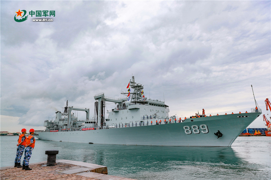 9月26日上午,由乌鲁木齐舰、烟台舰、太湖舰组成的海军第39批护航编队在青岛某军港解缆起航,赴亚丁湾接替第38批护航编队执行护航任务。赵阳 摄