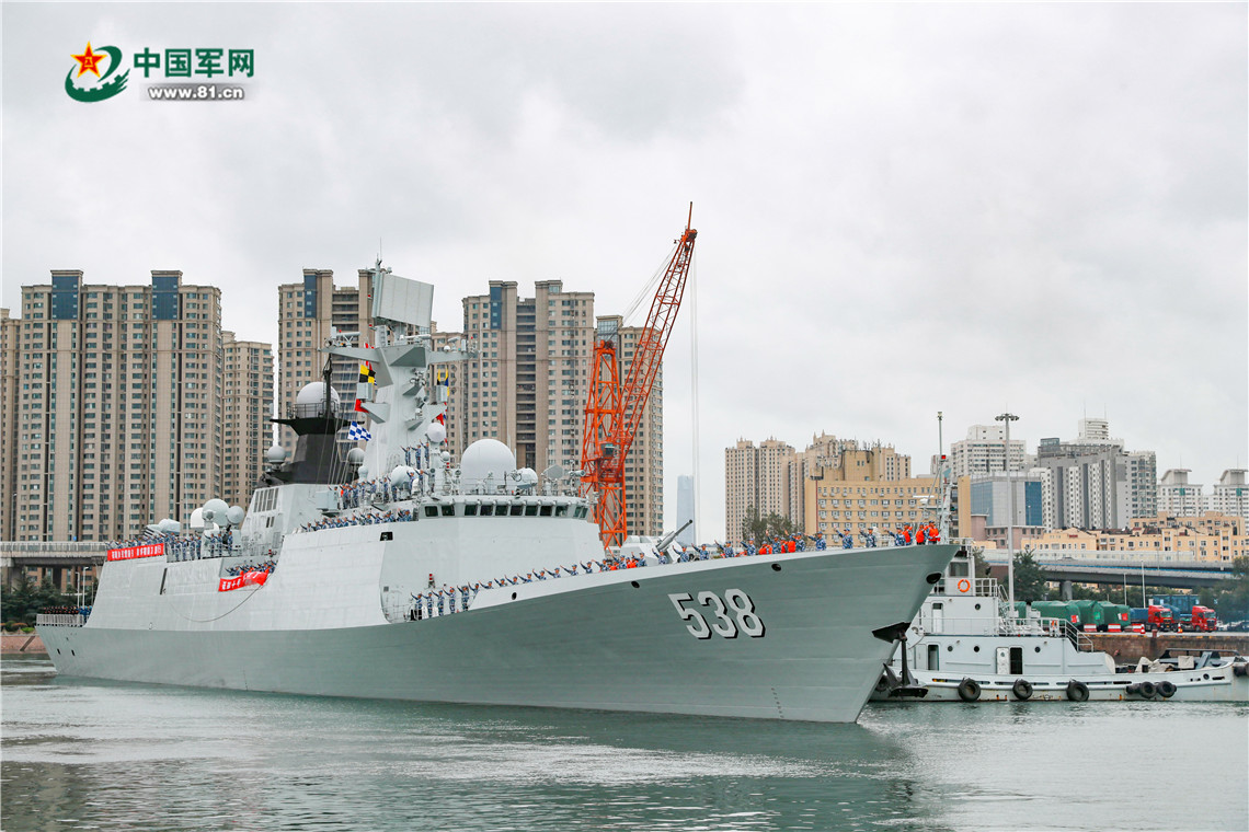 9月26日上午,由乌鲁木齐舰、烟台舰、太湖舰组成的海军第39批护航编队在青岛某军港解缆起航,赴亚丁湾接替第38批护航编队执行护航任务。高验杰 摄