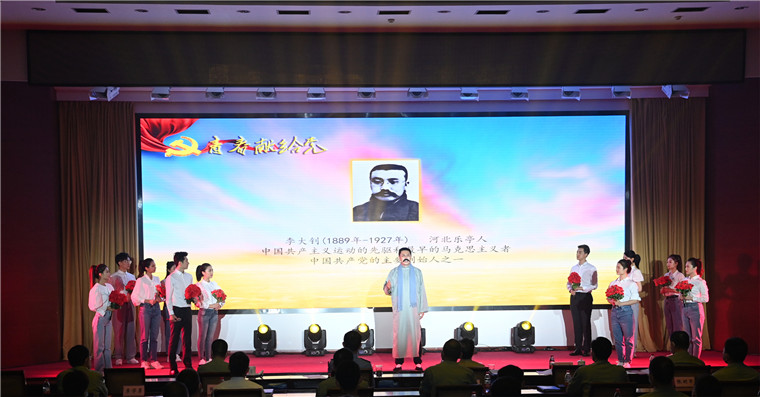 记者卫晨霞、苏娟、张斌、李伟等表演情景诗朗诵《青春献给党》