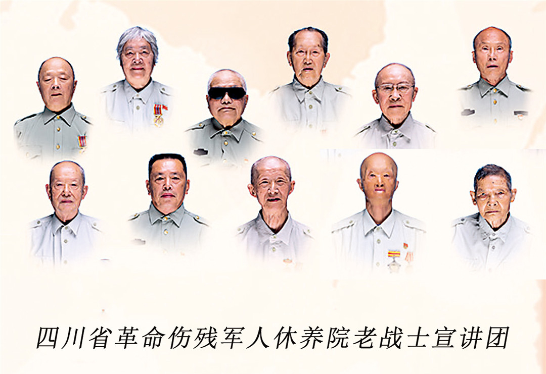四川省革命伤残军人休养院老战士宣讲团 四川省革命伤残军人休养院老战士宣讲团前身是被周恩来总理称赞为“人民的战士、人民的艺术家”的伤残军人课余演出队。60多年来,老战士宣讲团与党同心、跟党同行,坚守初心使命,赓续红色血脉,义务作爱国主义教育、革命传统教育、国防教育报告近万场。宣讲团从最初的20余人发展到70余人,目前仍有11名平均年龄近85岁的老战士坚守宣讲一线。中国人民志愿军抗美援朝出国作战70周年之际,习主席给四川省革命伤残军人休养院全体同志回信,充分肯定休养院全体同志为爱国主义教育和国防教育活动所作的贡献。