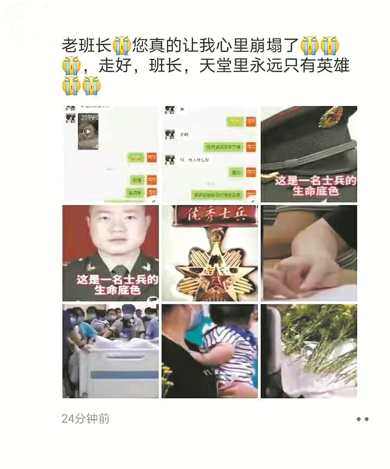王启鹏生前战友微信朋友圈截图。