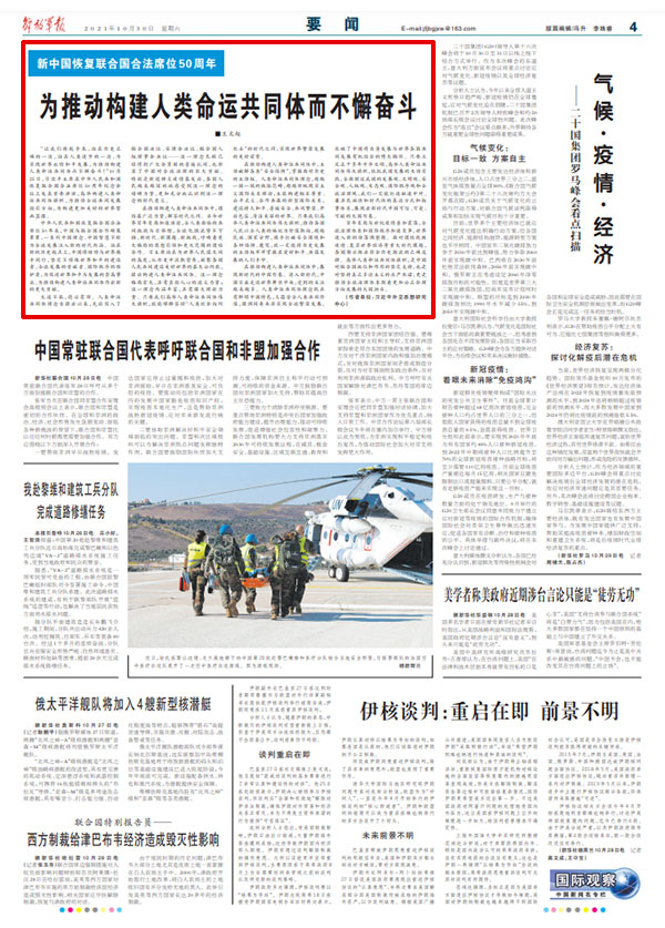 新中国恢复联合国合法席位50周年:推动构建人类命运共同体