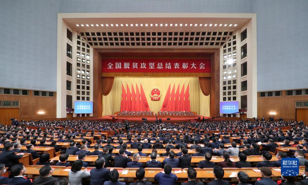 2月25日,全国脱贫攻坚总结表彰大会在北京人民大会堂隆重举行。新华社记者 谢环驰 摄