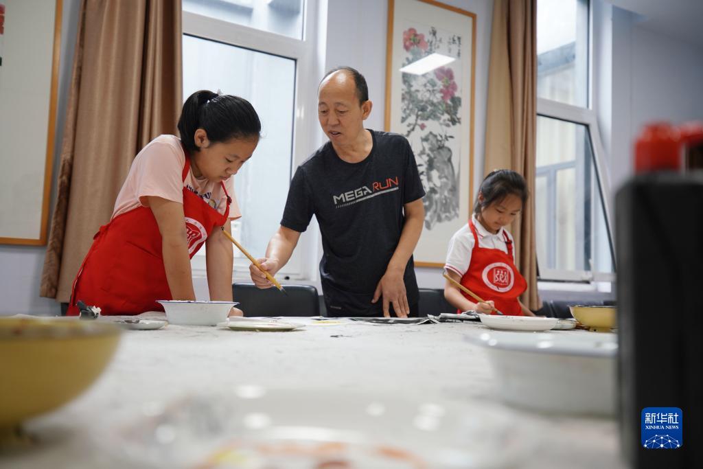 9月4日,小学生在内丘县文化馆学习绘画。新学期伊始,河北省邢台市内丘县积极落实“双减”政策,鼓励中小学生走进当地的博物馆、图书馆、书店等,度过快乐、有意义的周末。新华社发(刘继东 摄)