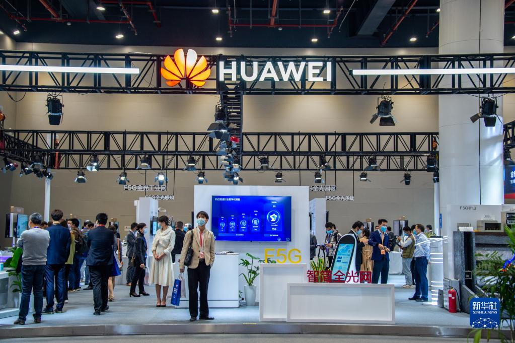 10月27日,第十八届“中国光谷”国际光电子博览会暨论坛在武汉中国光谷科技会展中心开幕,这是华为公司展区。新华社发(伍志尊 摄)