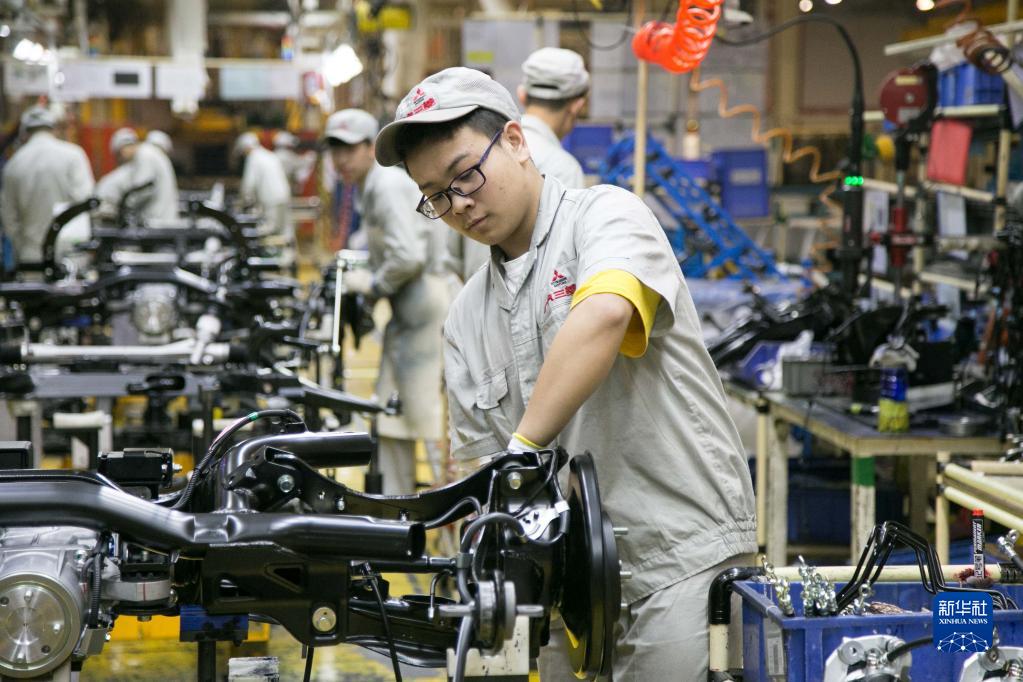 戴泳在广汽三菱长沙工厂总装车间工作(2019年4月30日摄)。17岁的戴泳就读于长沙汽车工业学校,在广汽三菱长沙工厂负责汽车后桥组装是他的第一份实习工作。半年的实习让他成为一名熟练的技术工人,戴泳希望未来能不断学习,毕业后为智能制造的发展贡献自己的力量。新华社记者 陈思汗 摄