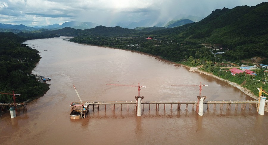 2018年7月11日,中老铁路跨湄公河特大桥主桥基础施工全面完成。