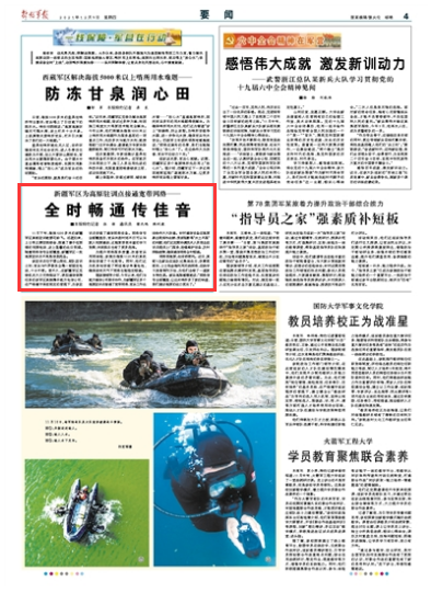 11月下旬,海拔5200多米的新疆军区某部驻训地雪花纷飞。巡逻归来,上士李正渊回到宿舍,拨通了妻子包丽娟的视频电话,送上温馨的生日祝福。随着网络信号全面覆盖,新疆军区一批高原驻训点不再是信息孤岛。