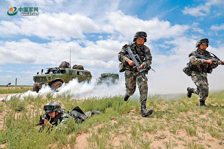 演习中,第82集团军某旅官兵正在快速突击。刘 魁摄