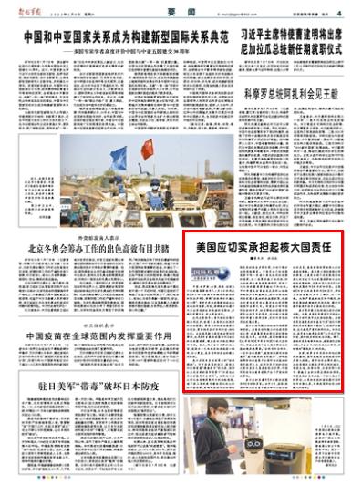 当前,世界百年变局和世纪疫情交织叠加,国际战略安全领域面临许多重大挑战。国际核安全事关重大。五核国理应以联合声明为新的起点,增进互信,加强协作,为建设持久和平、普遍安全的世界发挥积极作用。希望美国切实承担起一个核大国应尽的责任,以更加积极的姿态履行国际核不扩散义务,不再做国际核安全的最大风险源。