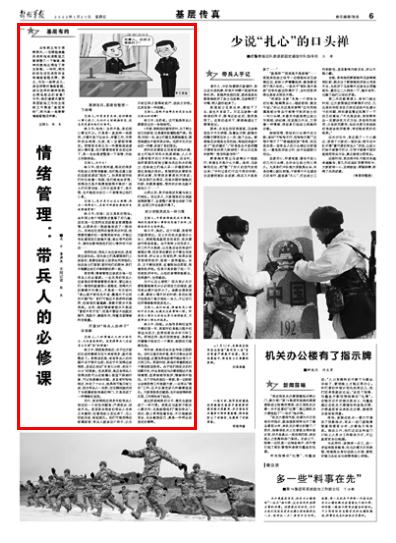 从那以后,我开始尝试笑着与战士们相处。没过多久,大家跟我的交流就变得频繁了,全营整个氛围也活跃了很多,各项工作也容易开展了。