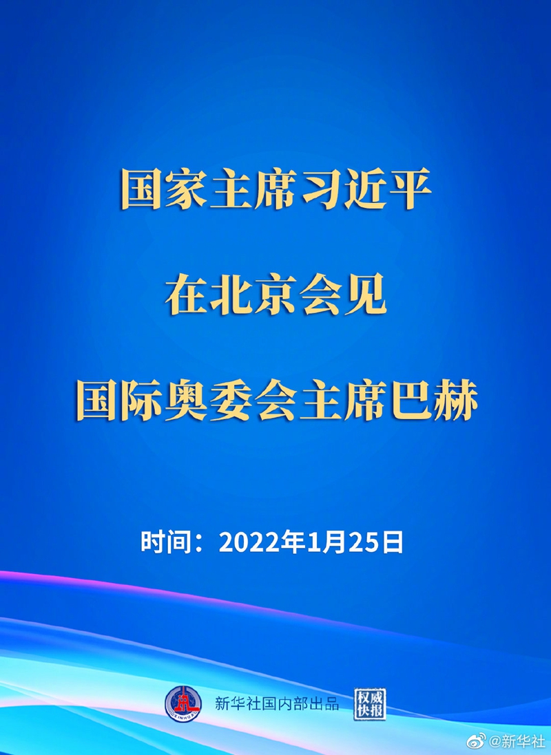 国家主席习近平1月25日下午在钓鱼台国宾馆会见国际奥委会主席巴赫。