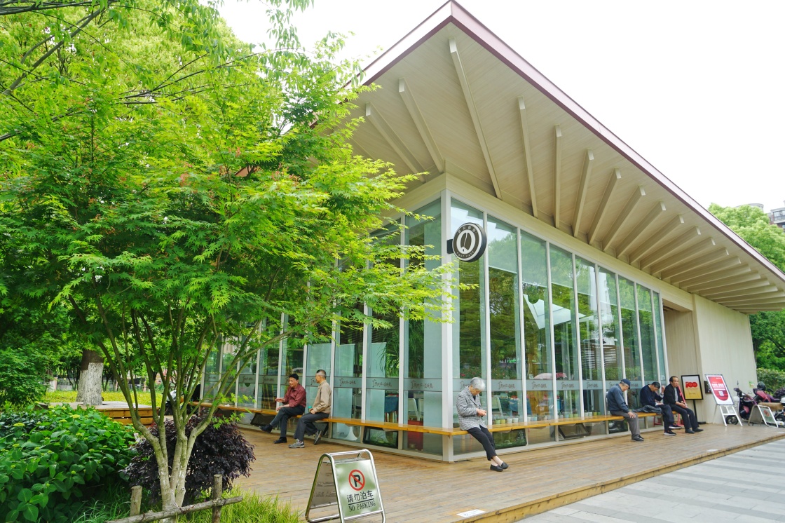 市民在浙江省嘉兴市望湖路城市驿站休息(2021年4月25日摄)。嘉兴市结合中心城市品质提升全面推进“厕所革命”,在形象、功能、服务等方面对传统公共卫生间进行改造升级,10座原老旧公共卫生间改造成集多种人性化功能和服务为一体的“禾城驿·温暖嘉”城市公共服务驿站。新华社发(金鹏 摄)