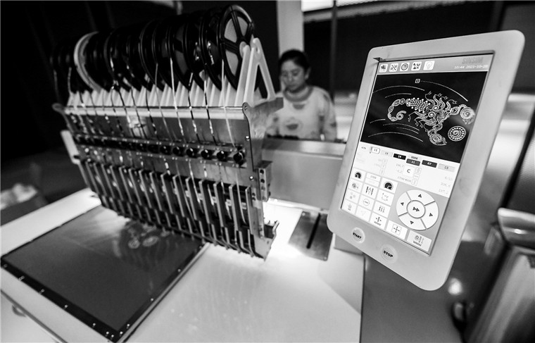 有“中国刺绣机产业基地”之称的浙江省诸暨市,近年间推进传统产业数字化改造升级,重塑行业竞争力。图为企业最新研发的智能化烫片机在进行测试。新华社记者 徐 昱摄