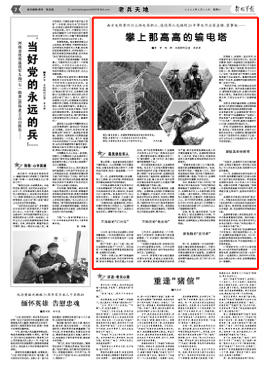 “我第一次爬上去,脚下是悬崖峭壁,身旁是高压电线,风在耳旁呼呼咆哮,塔身不停晃动,我的双腿止不住地发抖。塔下的老师傅等得久了,扯着嗓子问我怎么还不下去?我是当过兵的人,哪好意思说害怕,硬着头皮回了一句‘看风景呢’。缓了好半天,我才强忍着恐惧慢慢爬下去。”