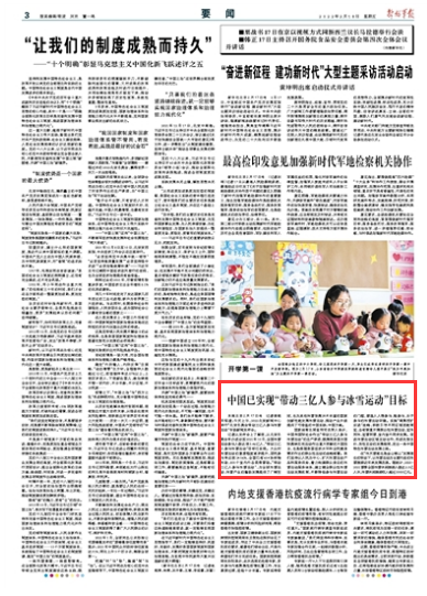 解放军报北京2月17日电 记者袁晓芳报道:今天上午,2022北京新闻中心举行“北京冬奥会带动三亿人参与冰雪运动”专场新闻发布会。