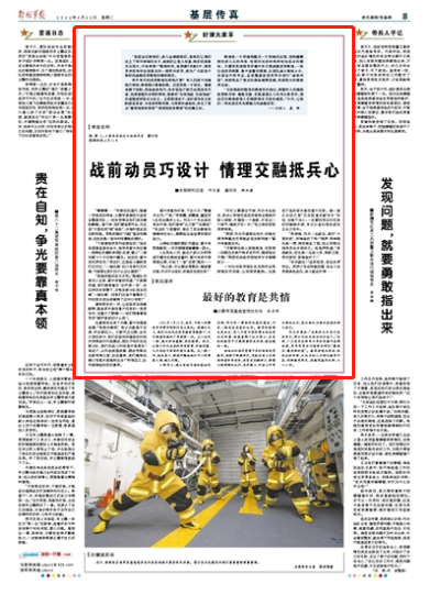 细细品味指导员翟中良的战前动员教育,相较于新颖形式,更胜在其三言两语讲透职责使命,使官兵在精神上、情感上获得感性认识,在思想上、行动上升华为理性认识,进而转化为练兵备战的强大动力。
