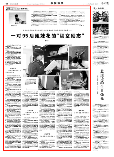 后来,博士毕业的陈文婷成为一名大学老师。她更加牵挂远在边疆的妹妹,经常和陈宇丹通电话,听妹妹兴奋地讲“兵之初”的经历,“有自豪,也有心疼”。