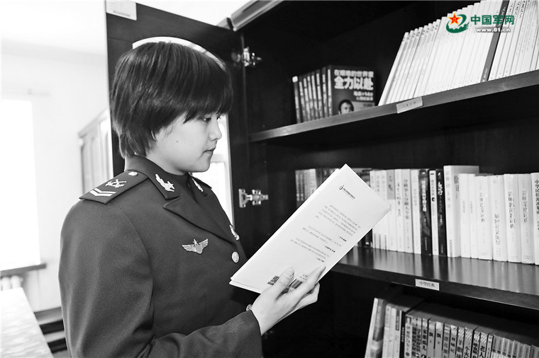 妹妹陈宇丹在连队阅览室
