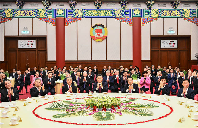 2021年12月31日,全国政协在北京举行新年茶话会。党和国家领导人习近平、李克强、汪洋、王沪宁、赵乐际、韩正、王岐山出席茶话会并观看演出。