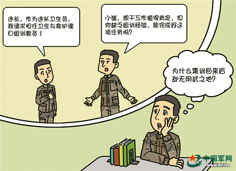 是啊,我刚担任卫生员不久,也不曾负责过全连的组训任务。连长的质疑让我打起了退堂鼓,但转念一想,这次机会难得,而且我集训学到的知识技能还没发挥作用,不能就此放弃。