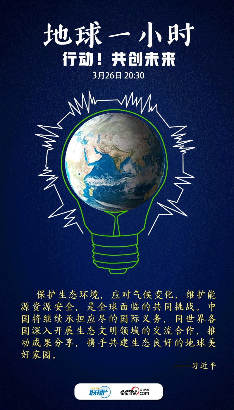 保护地球不止一小时。央视网《联播+》梳理总书记相关论述,邀您一起“节”尽所“能”,争当地球家园呵护者、绿色生活理念传播者、低碳生活方式践行者,为建设绿色新家园多作贡献。