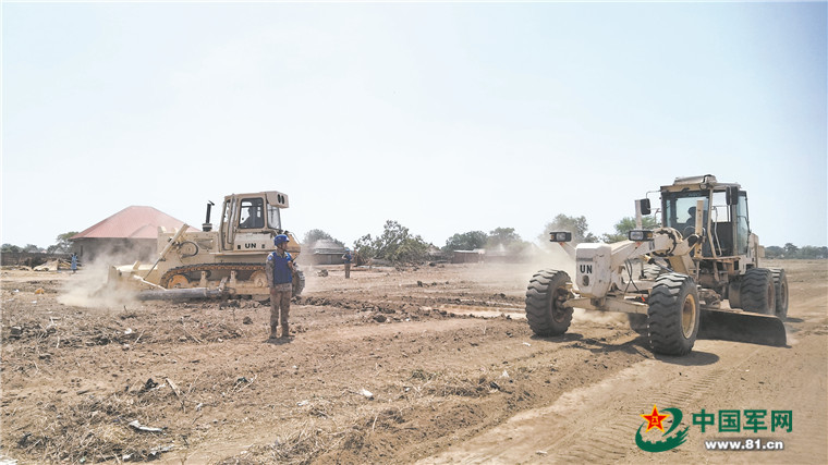 我维和工兵分队官兵进行机场跑道平整作业。 好日瓦摄