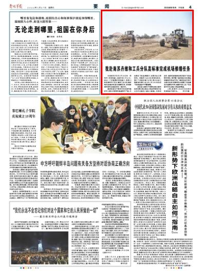 解放军报南苏丹瓦乌3月26日电 周海军、范恒报道:当地时间3月24日,经过一个多星期的紧张施工,我第12批赴南苏丹(瓦乌)维和工兵分队高标准完成通济机场的修缮任务,受到联南苏团和当地政府的一致好评。