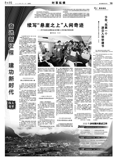 2020年,高寿村整村脱贫。春节期间,我回村探望父母,看到不少人家里都修了新院坝,盖起新房子。来到村党支部,看到一群穿着迷彩服的人和村干部一道走出会议室。村支书张国映介绍说,穿迷彩服的人是武隆区人武部的官兵,每个月他们都会来村里,和党员们一起商量村子的发展规划。