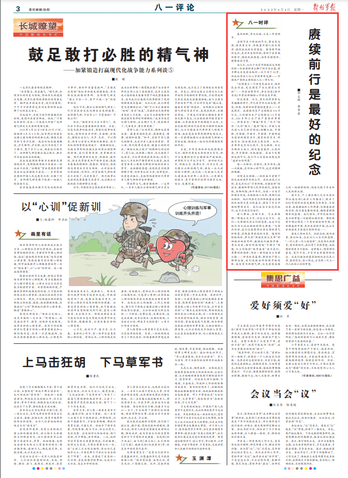 最美人间四月天。此时此刻,抚今追昔,鉴往知来,总是让人心生无限感慨。“一代人有一代人的使命”,生在伟大的国家,身处新时代,我们有了实现梦想、成就精彩的更多可能性。追梦路上,唯有踔厉奋发、笃行不怠,才是对先辈最好的纪念。让我们把这份最深切的纪念记在心间、落到实处,清心明志,去实现一代又一代人孜孜以求的梦想。