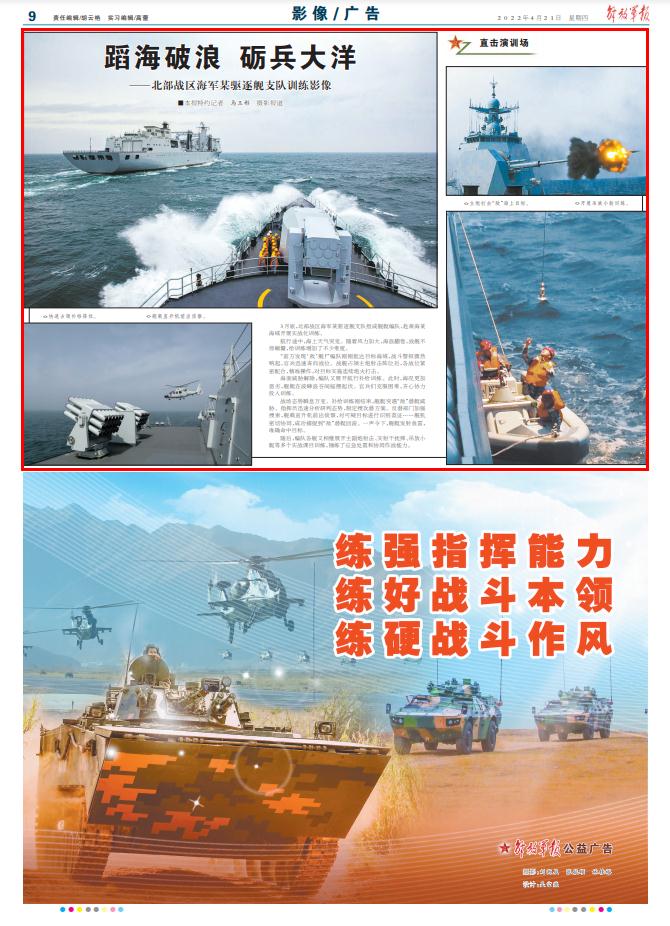 3月底,北部战区海军某驱逐舰支队组成舰艇编队,赴黄海某海域开展实战化训练。