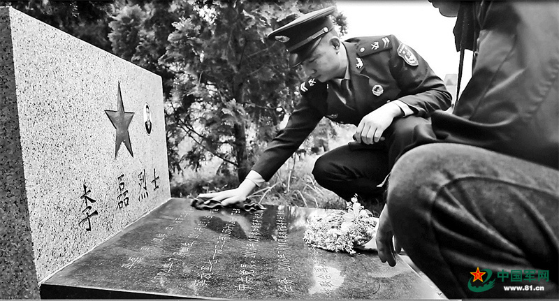 李伯利祭扫战友李磊烈士墓。李 波摄