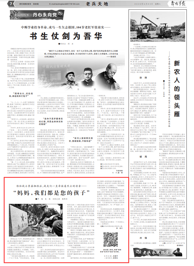 与李伯利一起到烈士陵园祭扫李磊的,还有“杨根思连”的老兵陈耀明。陈耀明与李磊是高中同班同学,后来一起入伍。当年,一同赴南苏丹执行维和任务,他们相互约定:“如果牺牲了,你的父母就是我的父母。”他们一直信守承诺。几位退役回乡的老战友常常相约来到杨彬家中, 叫一声“妈妈”,尽一份孝心。