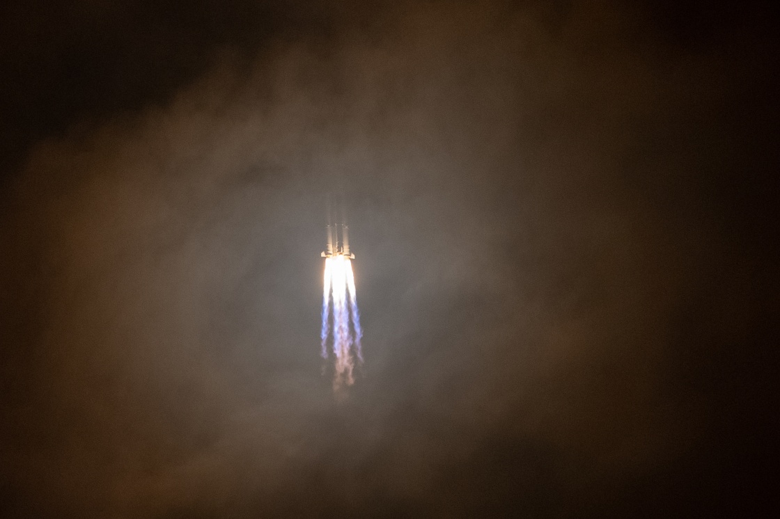 5月10日凌晨1时56分,长征七号运载火箭托举着天舟四号货运飞船腾空而起,约10分钟后,飞船与火箭成功分离,进入预定轨道,2时23分,飞船太阳能帆板顺利展开工作,发射取得圆满成功。新华社记者 胡智轩 摄