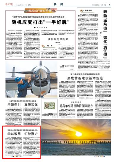 学以致用结硕果。该院引导教员将来自演训一线的战例案例融入教学训练内容,构建起实战化军事基础教学体系。前不久结束的毕业联考中,该院学员优良率创历史新高。